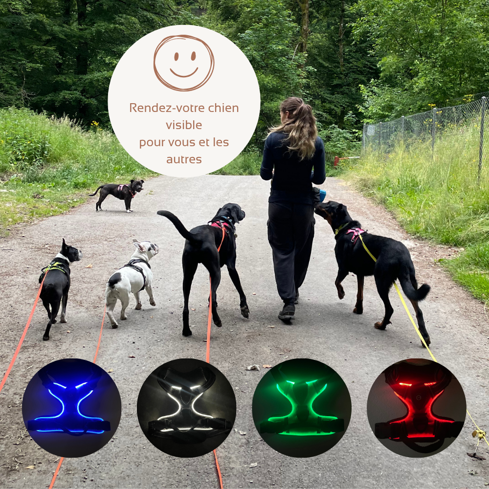 90% de nos clients disent se sentir plus serein lors de leurs balades nocturnes grâce à notre harnais lumineux. Ils regrettent de ne pas l'avoir acheté plus tôt!