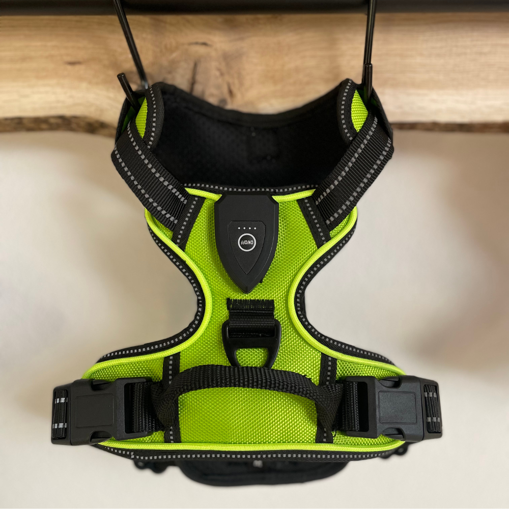 Une LED sur tout le pourtour du harnais visible jusqu'à 300m dans des conditions météo optimales. Une garantie de visibilité pour votre chien