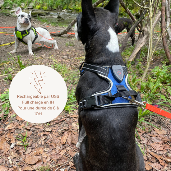 Une batterie rechargeable par USB en 1H seulement qui illuminera votre chien pendant 8 à 10H selon le mode lumineux. Sa mission : protéger votre chien.