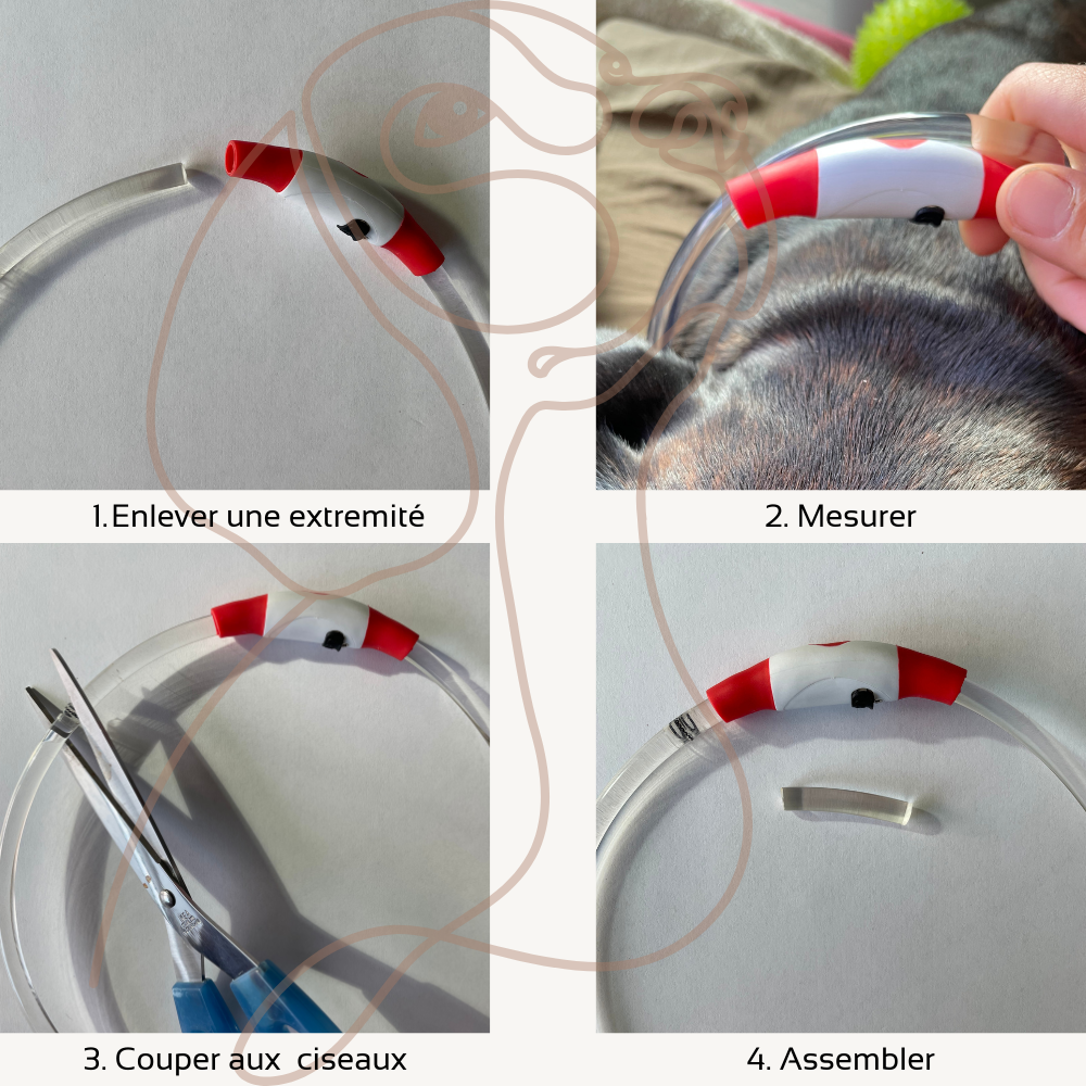 - Mesurez le cou de votre chien (Conseil: en laissant 4 doigts entre le chien et le collier lors de la mesure afin de facilité le passage de la tête)